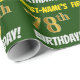 Ce papier d’emballage comporte un message comme "FIRST-NAME’S 78th BIRTHDAY!", avec le "78th" ayant une apparence de couleur fausse/imitation or, et avec le nom et "BIRTHDAY" dans une police amusante et audacieuse. Le nom peut être personnalisé, et l'arrière - plan est vert couleur. Un papier comme celui-ci pourrait peut-être être utilisé pour envelopper les cadeaux d'anniversaire donnés à quelqu'un pour célébrer leur soixante-dix-huitième anniversaire. [~Z0000208]