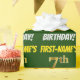 Ce papier d’emballage comporte un message comme "FIRST-NAME’S 7th BIRTHDAY!", avec le "7th" ayant une apparence de couleur fausse/imitation or, et avec le nom et "BIRTHDAY" dans une police amusante et audacieuse. Le nom est personnalisable, et l'arrière - plan est en couleur verte. Un papier comme celui-ci pourrait peut-être être utilisé pour envelopper les cadeaux d'anniversaire donnés à quelqu'un pour célébrer leur septième anniversaire. [~Z0000208]
