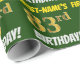 Ce papier d’emballage comporte un message comme "FIRST-NAME’S 83rd BIRTHDAY!", avec le "83rd" ayant une apparence de couleur fausse/imitation or, et avec le nom et "BIRTHDAY" dans une police amusante et audacieuse. Le nom peut être customisé, et l'arrière - plan est vert de couleur. Un papier comme celui-ci pourrait peut-être être utilisé pour envelopper les cadeaux d'anniversaire donnés à quelqu'un pour célébrer leur quatre-vingt-troisième anniversaire. [~Z0000208]