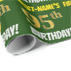 Ce papier d’emballage comporte un message comme "FIRST-NAME’S 95th BIRTHDAY!", avec le "95th" ayant une apparence de couleur fausse/imitation or, et avec le nom et "BIRTHDAY" dans une police amusante et audacieuse. Le nom peut être personnalisé, et l'arrière - plan est vert couleur. Un papier comme celui-ci pourrait peut-être être utilisé pour envelopper les cadeaux d'anniversaire donnés à quelqu'un pour célébrer son quatre-vingt-quinzième anniversaire. [~Z0000208]