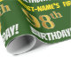 Ce papier d’emballage comporte un message comme "FIRST-NAME’S 98th BIRTHDAY!", avec le "98th" ayant une apparence de couleur fausse/imitation or, et avec le nom et "BIRTHDAY" dans une police amusante et audacieuse. Le nom est personnalisable, et l'arrière - plan est en couleur verte. Un papier comme celui-ci pourrait peut-être être utilisé pour envelopper les cadeaux d'anniversaire donnés à quelqu'un pour célébrer son quatre-vingt-dix-huitième anniversaire. [~Z0000208]