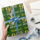 Ce design papier d’emballage comporte un message comme "90e ANNIVERSAIRE de FirstName!", le "90e" ayant une apparence de couleur fausse/imitation or. Le nom peut être customisé, et l'arrière - plan est vert de couleur. Il pourrait peut-être être utilisé pour envelopper les cadeaux donnés pour le quatre-vingt-dixième anniversaire de quelqu’un. [~Z0000179]