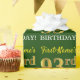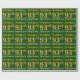 Ce papier d’emballage comporte un message comme "93e anniversaire de prénom!", avec le "93e" qui a une apparence de couleur fausse/imitation or. Le nom peut être customisé, et l'arrière - plan est vert de couleur. Il pourrait peut-être être utilisé pour envelopper les cadeaux donnés pour le quatre-vingt-treize anniversaire de quelqu’un. [~Z0000179]