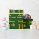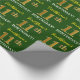 Ce design papier d’emballage comporte un message comme "11e ANNIVERSAIRE de FirstName!", le "11e" ayant une apparence de couleur fausse/imitation or. Le nom peut être personnalisé, et l'arrière - plan est vert couleur. Il pourrait peut-être être utilisé pour envelopper les cadeaux donnés pour le onzième anniversaire de quelqu’un. [~Z0000179]