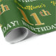 Papier Cadeau Vert, Imitation Or Look "11ème anniversaire"