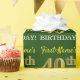 Ce design papier d’emballage comporte un message comme "40e anniversaire de prénom!", le "40e" ayant une apparence de couleur fausse/imitation or. Le nom peut être personnalisé, et l'arrière - plan est vert couleur. Il pourrait peut-être être utilisé pour envelopper les cadeaux donnés pour le quarantième anniversaire de quelqu’un. [~Z0000179]