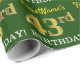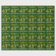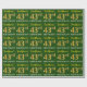 Ce design papier d’emballage comporte un message comme "43e anniversaire de prénom!", le "43e" ayant une apparence de couleur fausse/imitation or. Le nom peut être customisé, et l'arrière - plan est vert de couleur. Il pourrait peut-être être utilisé pour envelopper les cadeaux donnés pour le quarante-troisième anniversaire de quelqu’un. [~Z0000179]