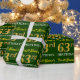 Ce design papier d’emballage comporte un message comme "63e anniversaire de prénom!", le "63e" ayant une apparence de couleur fausse/imitation or. Le nom peut être customisé, et l'arrière - plan est vert de couleur. Il pourrait peut-être être utilisé pour envelopper les cadeaux donnés pour le soixante-troisième anniversaire de quelqu’un. [~Z0000179]