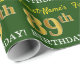 Ce papier d’emballage comporte un message comme "89e anniversaire de prénom!", avec le "89e" ayant une apparence de couleur fausse/imitation or. Le nom peut être customisé, et l'arrière - plan est vert de couleur. Il pourrait peut-être être utilisé pour envelopper les cadeaux donnés pour le quatre-vingt-neuvième anniversaire de quelqu’un. [~Z0000179]