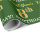 Papier Cadeau Vert, Imitation Or Look "8e anniversaire"