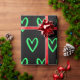 Papier Cadeau Vert printemps sur les coeurs noirs dessinés à la