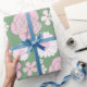 Papier Cadeau Vert rose blanc rétro Y2K les années 70 Fleur Moti