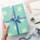 Ce papier d'emballage d'amusement comporte les étoiles chaux-jaunes sur un arrière - plan de vert de mousse de mer qui me rappelle l'été. Unisexe et peut être employé pour n'importe quelle occasion.