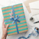 Papier Cadeau Vert Turquoise Lignes Bleues Faux Rustique Brown K