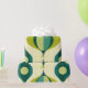 Cette oeuvre d'art présente un motif moderne remarquable du milieu du siècle composé de formes et de courbes audacieuses et abstraites. Le design est caractérisé par un motif répétitif d'ovales allongés et de formes en larmes dans des tons variés de vert, turquoise et jaune. Placé contre un arrière - plan crème légère aux textures subtiles et déprimées, le motif crée un sens de profondeur et de mouvement. La palette de couleurs d'inspiration rétro et les formes géométriques confèrent à la composition un charme vintage mais intemporel, en faisant une pièce vibrante et attrayante.