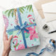 Apportez la plage à votre enveloppement cadeau avec ce design animé de Flamant rose Palm Tree Tropical Vibes. Parfait pour les fêtes ensoleillées, il présente des flamants roses et des palmiers luxuriants aux couleurs joyeuses de la côte.