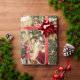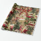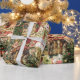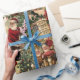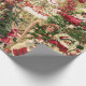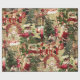 This is a richly detailed, vintage-style Christmas pattern featuring a dense collage of Victorian-era illustrations. It prominently includes depictions of Santa Claus interacting with decorated Christmas trees and various whimsical figures such as elves or gnomes, young children dressed in festive attire, and angels holding greenery. The background has a muted, slightly aged green and gold tone, accented throughout by poinsettia borders and large red candles, all contributing to a heavily nostalgic and traditional holiday aesthetic.