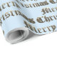 Ancien Français Lettres Joyeux Noël Papier d'enveloppement cadeau avec Elégant Faux Or Ancien Motif de typographie anglaise sur Baby Blue Arrière - plan