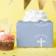 Cette belle et élégante première conception de sainte communion est décrite à un arrière-plan vintage bleu de vigne avec les filets bleu-clair. La croix sensible est conçue hors des perles. Aimez les grands souvenirs de la première sainte communion de votre enfant avec cette belle conception. Vérifiez les premiers accessoires de sainte communion, papeterie, et cadeaux assortis de communion.