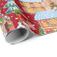 Village ludique et coloré de maisons en pain d'épices recouvertes de neige (arrière - plan rouge)