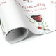 Papier d'emballage vin rouge élégant et rustique pour 80e anniversaire. Emballage cadeau pour fête des 80 ans pour elle ou lui. Verre de vin rouge, roses et brindilles sur fond blanc. Le texte est entièrement personnalisable - personnalisez-le avec votre nom et n'importe quel âge - 30e 40e 50e 70e 80e 90e 100e.