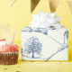 A classic blue toile landscape wrapping paper featuring detailed pastoral scenes, elegant trees, and historic architecture. With its refined timeless French-inspired vintage charm, it also makes an ideal gift for crafters, designers, and anyone who loves traditional toile art.