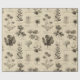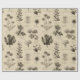Vintage botanical floral pattern wrapping paper featuring soft cream and beige flowers with detailed stems, leaves, and delicate script accents on an aged neutral background. Elegant and timeless with a rustic floral aesthetic, this seamless design is ideal for cottagecore lovers, garden enthusiasts, vintage style fans, and botanical art admirers.