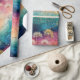 Vintage dandelion abstract pattern wrapping paper featuring delicate seed heads layered over rich teal, pink, and muted purple watercolor textures. Dreamy and artistic with an ethereal mixed-media aesthetic, this seamless design is ideal for botanical art lovers, boho style fans, nature enthusiasts, and vintage-inspired decor admirers.