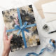 Vintage Distressed Black Flowers on Beige Background Wrapping Paper