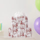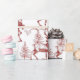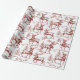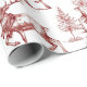 A nostalgic red Christmas gift wrap in vintage toile style, featuring reindeer in scarves with little bells among pine trees in delicate line art. The red on white artwork feels classic and woodland cozy under the tree. Pair with twine, velvet ribbon, or kraft tags for a timeless finish.