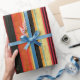 Papier d'emballage rétro vintage rayé en bandes orange, vert, jaune et rouge