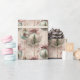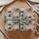 This vintage Victorian-style bauble and bow wrapping paper captures the charm of an old-world Christmas, with soft pastel mint green ornaments filled with whimsical Christmas tress and pinecones with delicate blush pink ribbon details, and a romantic antique background.