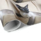 Les beaux yeux bleus sur ce chat siamois de point de joint lounging, mais l'alerte sur un taupe ou le chameau ont coloré la couverture de jet utilisée comme arrière - plan.