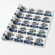 Papier Cadeau Voiture Blue Race avec drapeau À damiers