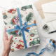 Le papier d'emballage coloré présente de charmantes voitures d'époque, des cadeaux gais et des décorations de vacances, incarnant l'esprit des fêtes de Noël et des cadeaux joyeux.
