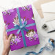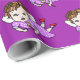Un beau papier cadeau avec une fée fantaisiste de style art folklorique dessiné à la main avec une robe violette pour l'anniversaire d'une petite fille.