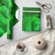 Un imprimé vert vif, lumineux et heureux. Cette impression a été créée à l'aide d'une image d'une vitre provenant d'un grand vitrail dans une église au nord de Chicago.