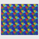 Ce papier d'emballage coloré présente un motif extensible d'un cercle abstrait brillamment coloré d'un tourbillon arc-en-ciel. Les lignes de chaque couleur de l'arc-en-ciel mènent au centre : rouge, orange, jaune, vert, bleu et violet. Un effet tridimensionnel est créé.