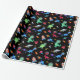 Papier Cadeau Watercolor Dinosaur Astronauts In Space Blue