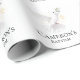This elegant baptism or christening gift wrap features a watercolor style image of a white dove. A sprig of an olive branch is being carried by the dove as it flies. A small gold cross is placed to the right. The beautiful religious image is gender neutral and perfect for either a girl or boy baptism or christening gathering. A sample name is printed below the dove, which you can personalize to include your own custom name or other text.