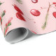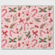 Featuring a charming hand-painted pattern of candy canes, red bows, holly leaves, pine sprigs, and bright cherries — all set against a soft blush pink background — this design brings a cozy yet luxurious feel to every present.