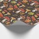 Papier Cadeau Whimsical Boho Autumn Mushrooms Leaves on Black