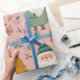 Add a sweet and playful touch to your holiday gifts with this Whimsical Pink Santa Wrapping Paper, featuring adorable hand-drawn Santas, festive Christmas trees, gifts, and florals in soft pastel tones.