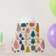 Celebrate the holidays with a creative twist using this Modern Whimsical Christmas Tree Wrapping Paper, featuring a hand-illustrated pattern of playful Christmas trees and abstract festive shapes in trendy mustard, teal, blush pink, and charcoal hues.