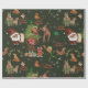 Papier Cadeau Whimsical Santa Elf & Friends Christmas Green