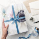 Wrap your spring gifts in sophisticated elegance with this hand-painted anemone and eucalyptus pattern. The crisp white petals with bold navy centers against a soft grey background offer a modern, high-end botanical look. Perfect for luxury Easter gift-giving or boutique product packaging.