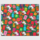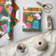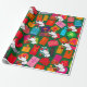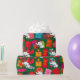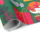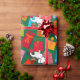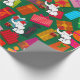 Papier enveloppant avec un éléphant blanc portant un chapeau de Père Noël et motif cadeau enveloppé avec un arrière - plan vert. Cela correspond aux invitations à la fête de Noël. Facile à personnaliser et à customiser.