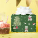 The design features White West Highland Terriers with various Christmas accessories in red and green, such as Christmas hats, a Christmas tree, funny glasses, ties, and bones, on a dark green background.