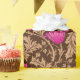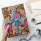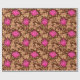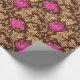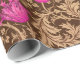 Papier enveloppant dans un motif vintage William Morris à damas floral de fleurs et de feuilles d'anémones, numériquement rehaussé et coloré - feuilles brun-café clair, et des fleurs dans les tons fuchsia profond et rose corail sur un arrière - plan chocolat foncé