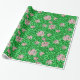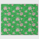 Papier enveloppé dans un motif de William Morris Art Nouveau de fleurs de miel suckle contre un arrière - plan de vignes et de feuilles - fleurs dans les tons rose glacé, avec feuilles vert émeraude, contre un arrière - plan vert pastel